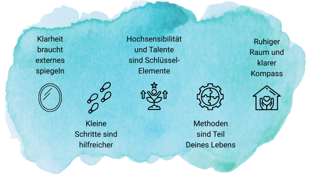 - Und weil es bisher an einem ruhigen Raum und einem klaren Kompass fehlte, der Deine Talente sichtbar macht und in Entscheidungen übersetzt.